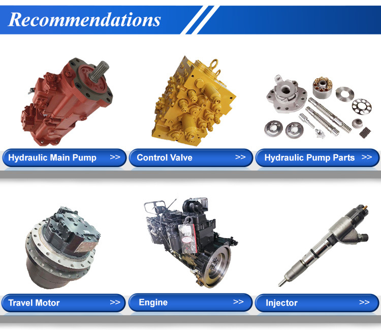 1. Hydraulic parts: hydraulic pump, main control valve, hydraulic cylinder, final drive travel motor, swing motor, travel gearbox, swing gearbox, gear pump, pump regulator, etc.