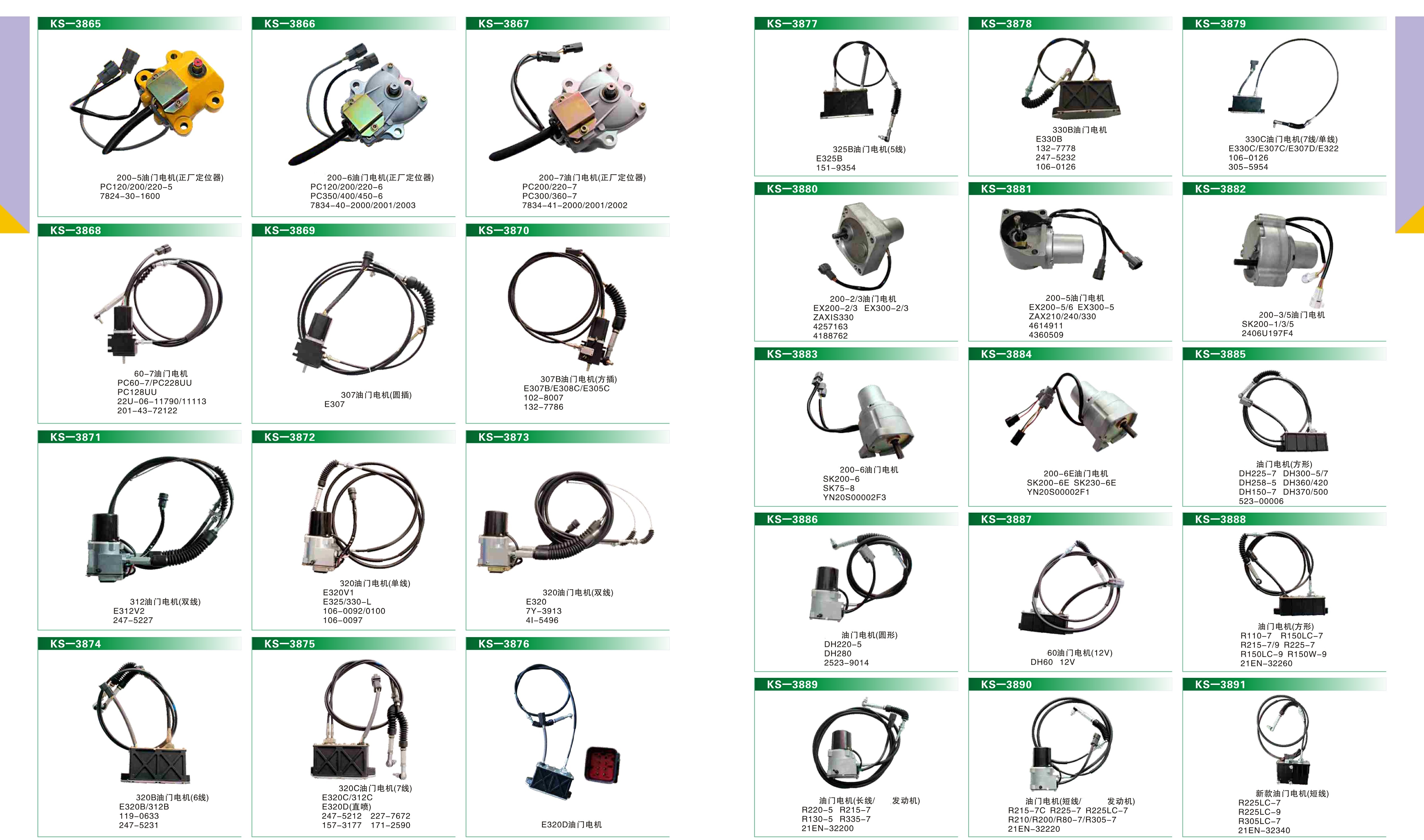 4. Electric parts: controller, monitor, panel, throttle motor, solenoid valve, solenoid coil, wire harness, switch, sensors, relay, working lamp, etc.